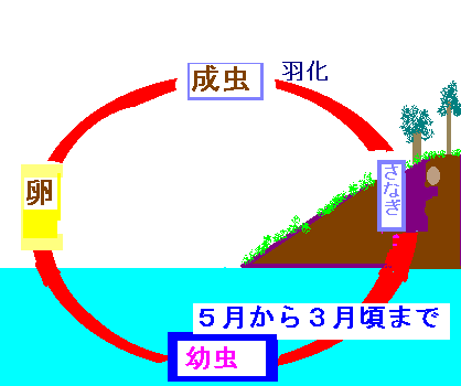 | ホタルは完全変態である。(成虫→さなぎ→幼虫→卵) | |